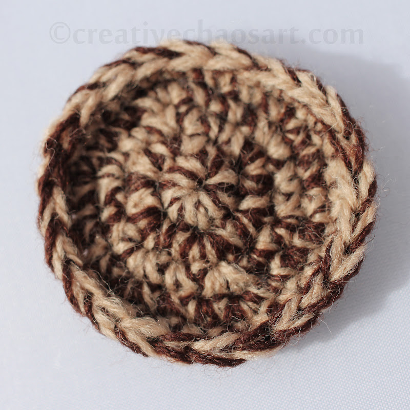 Here you can see a sample of the wool I was using, just simply crocheted. (For reference, I've used one strand of 4 ply pale brown wool, and one strand of 4 ply dark brown wool, as it was the colour scheme I needed, but you can use whatever you want! One strand, four strands... Red, purple, blue... Anything!)
